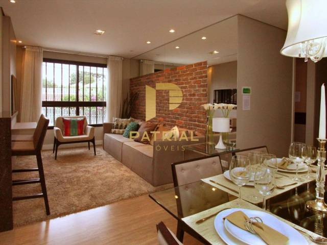 Imóvel com 2 dormitórios, sendo 1 suíte, banheiro social, sacada e cozinha com churrasqueira integrada.